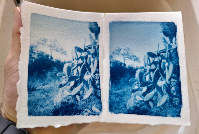 The only paper for cyanotypes was this old pad of Bockingford. The cyanotype chems soaked right in, and the tooth of the paper was far too textuted for my liking. Losing some detail in its roughness.